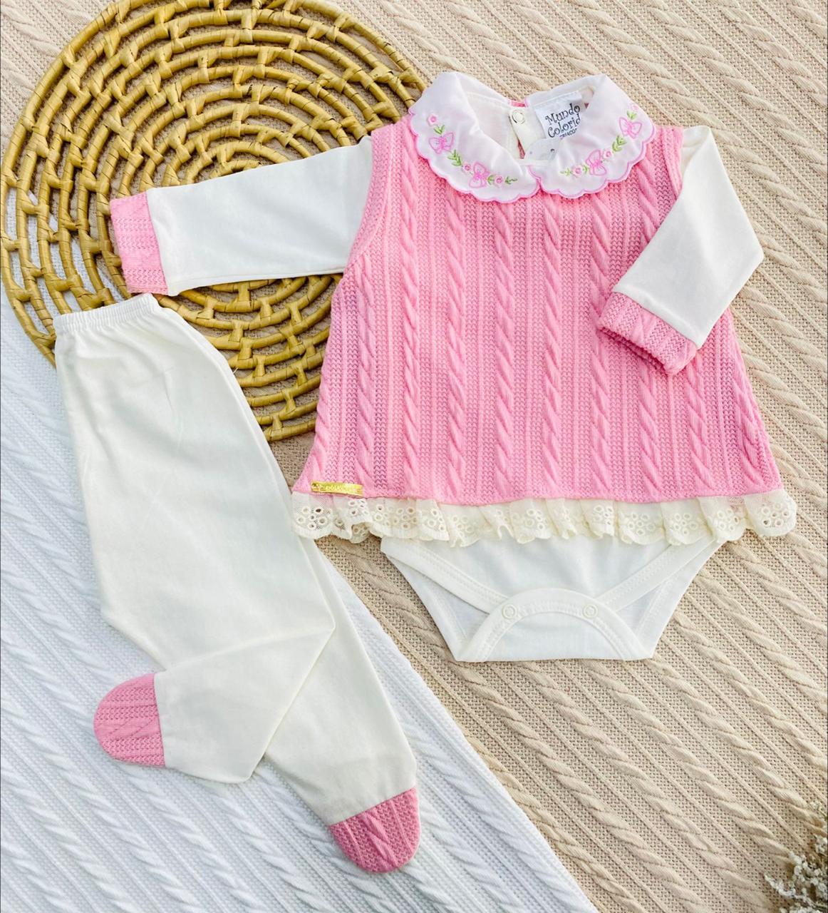 O Conjunto de Pagão Feminino 3 Peças é a escolha perfeita para manter sua bebê confortável e estilosa nos primeiros meses de vida. Composto por um lindo vestido em tricô, um body de malha macia e um mijão prático, este conjunto foi pensado para oferecer liberdade de movimento e aconchego. O vestido apresenta um design delicado em rosa, com detalhes em renda que trazem um toque de charme, enquanto o body com fechamento em botões facilita as trocas. O mijão, com punhos em rosa, garante aquecimento e conforto, ideal para os dias mais frescos. Feito com materiais de alta qualidade, o conjunto é respirável e suave ao toque da pele sensível do bebê. Perfeito para passeios ou momentos em casa, o Conjunto de Pagão é uma excelente opção de presente para chás de bebê e aniversários. Proporcione à sua pequena um visual adorável e confortável com esse conjunto encantador.